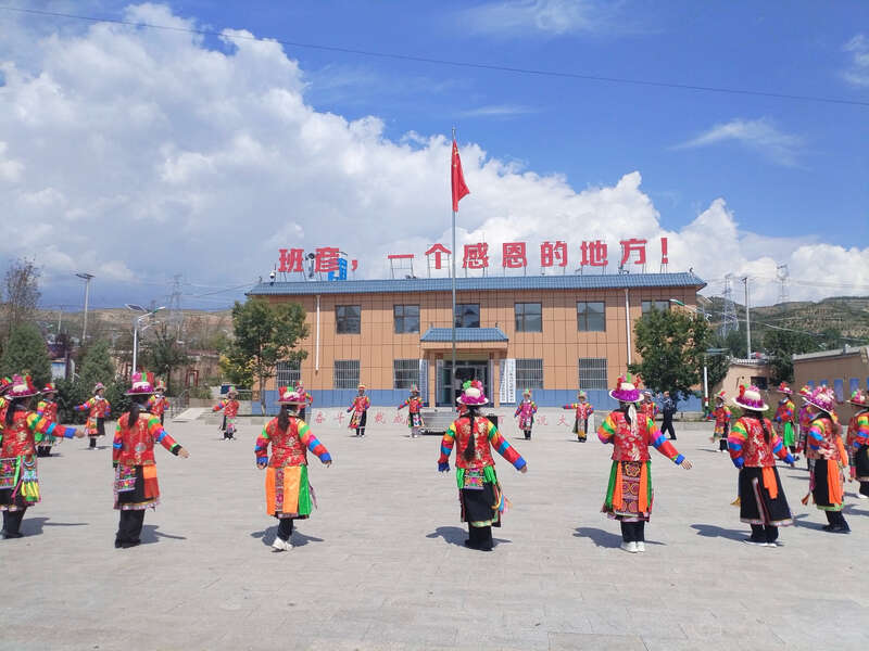 青海省海東市互助土族自治縣五十鎮,土族姑娘在班彥新村表演傳統舞蹈。中青報·中青網記者 郝帥/攝