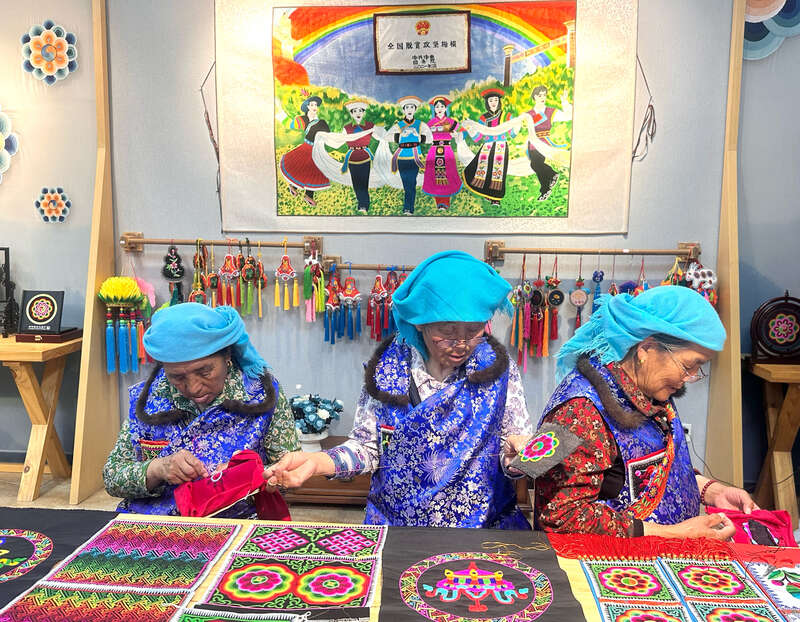 這幾年,除了自己做盤繡,張卓麻什姐還引導村裏的女孩子們學習土族盤繡。這名從小跟着奶奶和媽媽學盤繡手藝的本地村民説,“我是非遺傳承人,就要想辦法把這門技藝傳承下去,帶動身邊更多的村民過上富足生活。”