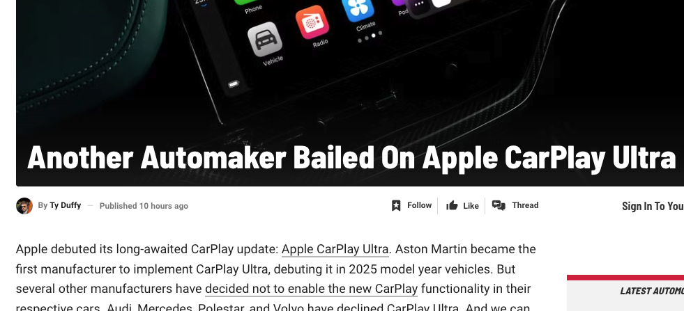 據外媒統計,截至2025年7月,奔馳、奧迪、沃爾沃等歐洲品牌均明確拒絕CarPlay Ultra,理由集中於“數據安全”與“生態控制權”。例如,奔馳MBUX系統負責人曾公開表示:“我們不會允許蘋果地圖覆蓋MBUX的增強現實導航,這是奔馳的DNA。”