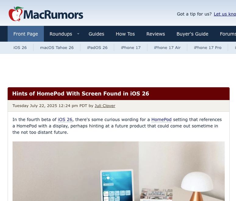 iOS 26 Beta 4代碼藏玄機:蘋果或推"帶屏版HomePod"