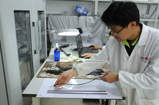 簡牘發掘、保護和修復是一場與時間的賽跑。“剛出土的竹簡軟得像麪條,非常脆弱,接觸空氣後極易氧化變黑,可能導致文字瞬間消失。”蔣魯敬説,在龍會河楚墓發掘中,他們採用“整體提取法”:以薄塑料板作“手術刀”,木託板為“擔架”,將整堆簡牘托起,並快速送往荊州文物保護中心。