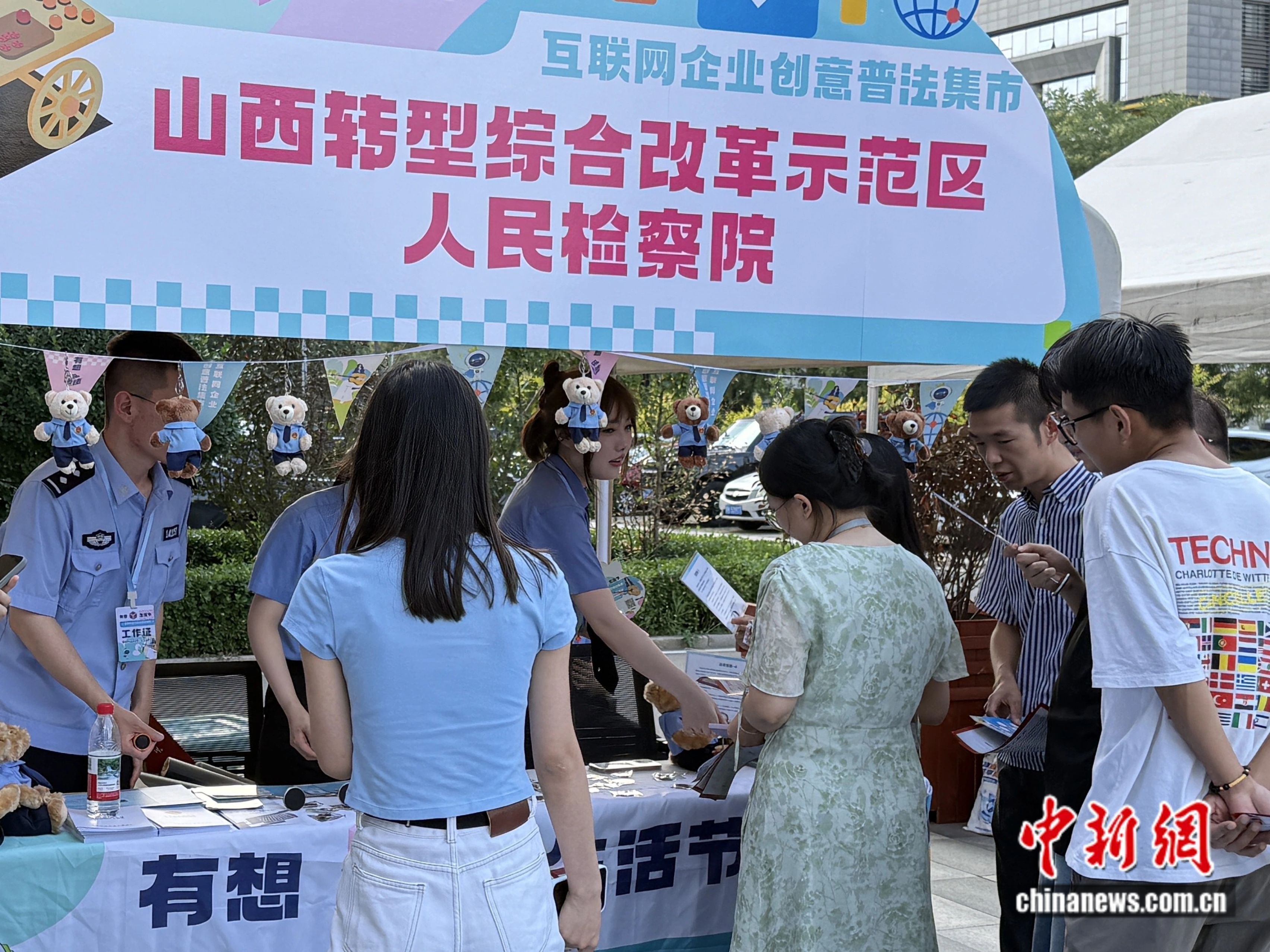 7月22日,2025年“全國網絡普法行·山西站”活動在山西太原啓動。當日下午,採訪團一行來到山西轉型綜合改革示範區,彼時,一場別開生面的“有想‘法’生活節·互聯網企業創意普法集市”活動正在舉行。
