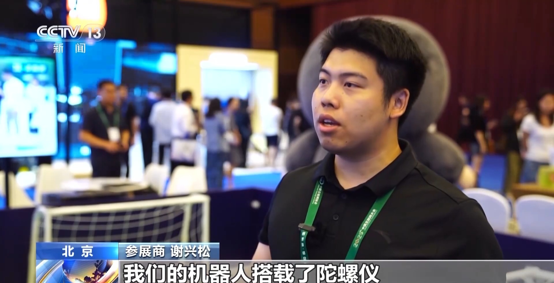 *參展商 謝興松:*我們的機器人搭載了陀螺儀,能在運動過程中自平衡。在足球賽的激烈對抗中,可以最大限度測試人形機器人的性能極限,能在未來更好應用。