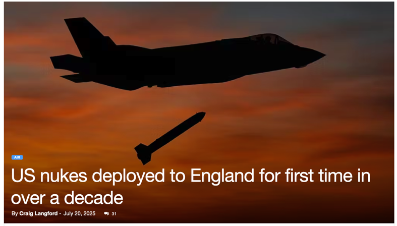 △《泰晤士報》報道:美國核武17年來首次登陸英國領土。