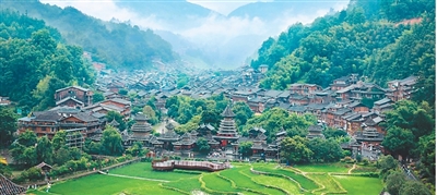青山環抱的侗寨,鼓樓羣、風雨橋、吊腳樓錯落有致,綠色稻田和古樸村寨相映成趣,侗族大歌、踩歌堂等民族文化活動多姿多彩。