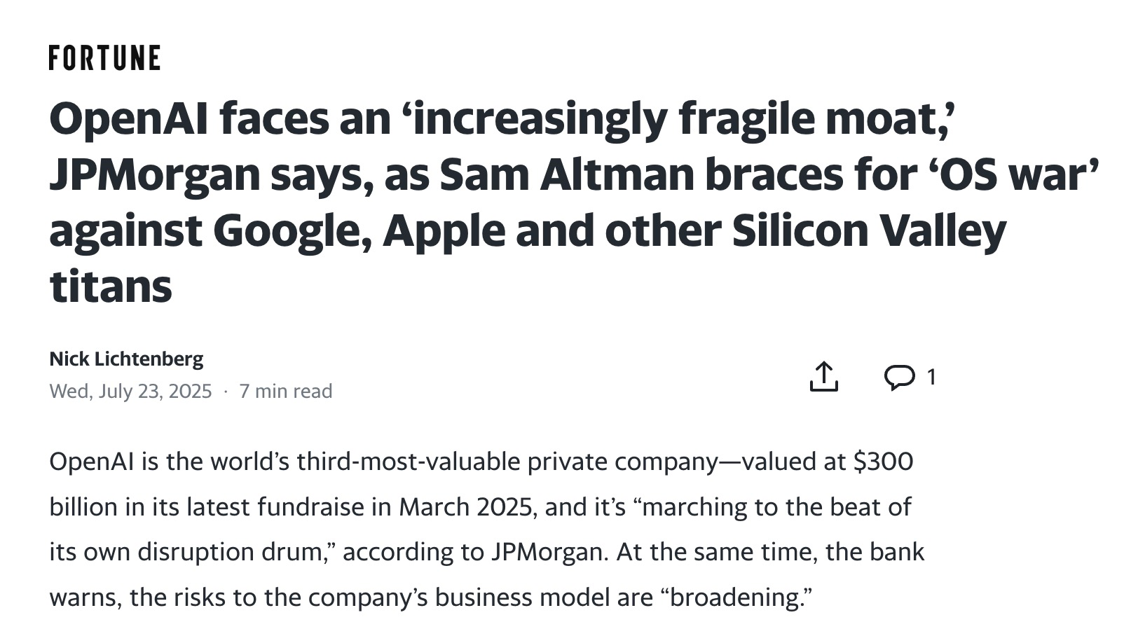 摩根大通發現,OpenAI 的“前沿模型創新”正在轉變為“日益脆弱的護城河”,這家人工智能巨頭面臨的前景是規模和範圍都在不斷擴大的“風險之窗”。報告預測“人才和訴訟風險將不斷上升,以及與 OpenAI 非傳統組織結構相關的戰略不確定性”。