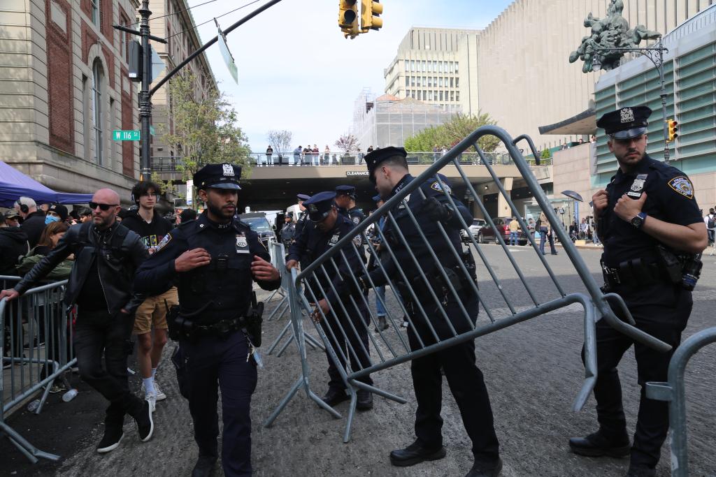 4月30日,警察在美國紐約哥倫比亞大學外放置柵欄。新華社記者劉亞南攝