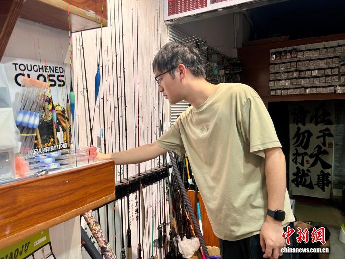 7月17日,顧客在江西省南昌市紅谷灘區一漁具店內挑選漁具。朱瑩 攝