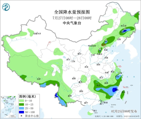 強降雨持續 華北北部至東北地區中部仍有大到暴雨**部分地區大暴雨