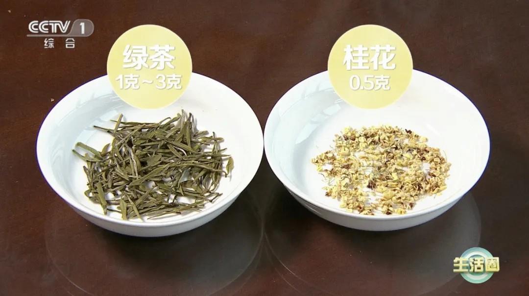 *製作方法:*取綠茶1~3克,桂花0.5克,一起沖泡飲用即可。