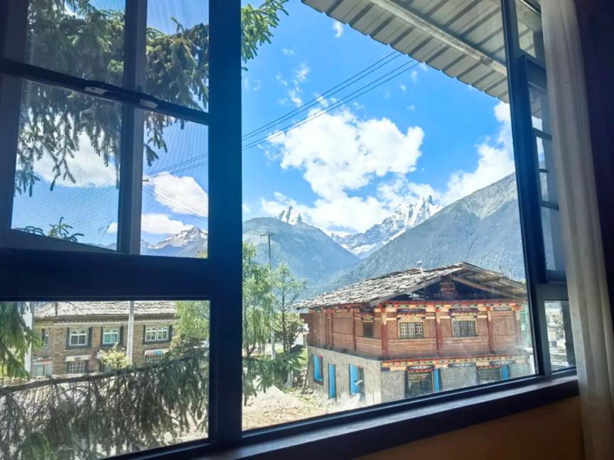 也只有抵達,沈輝才對高原有了清晰認知。從上海到珠峯腳下的4000公里,需要換乘飛機、火車和大巴等交通工具,歷時一天一夜,在暈車中練成“鐵腚”。沈輝工作的縣城由兩條街道組成,沒有大型商場,當地人喜歡待在街上,其樂融融。住所的窗外就是雪山和田野,風景如畫。