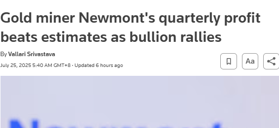 黃金價格漲價助力!紐蒙特二季度利潤超預期,緩解產量下滑衝擊