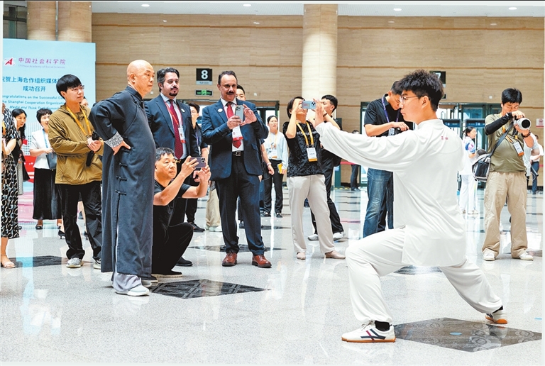 峯會現場,與會代表觀看太極拳表演。 新華社發