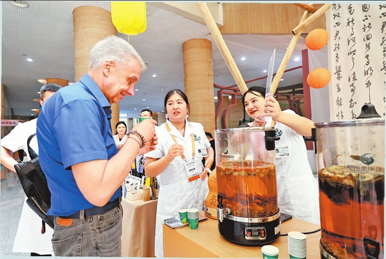 峯會展覽展示活動現場,中醫展台吸引了眾多嘉賓。本報記者 聶冬晗 攝