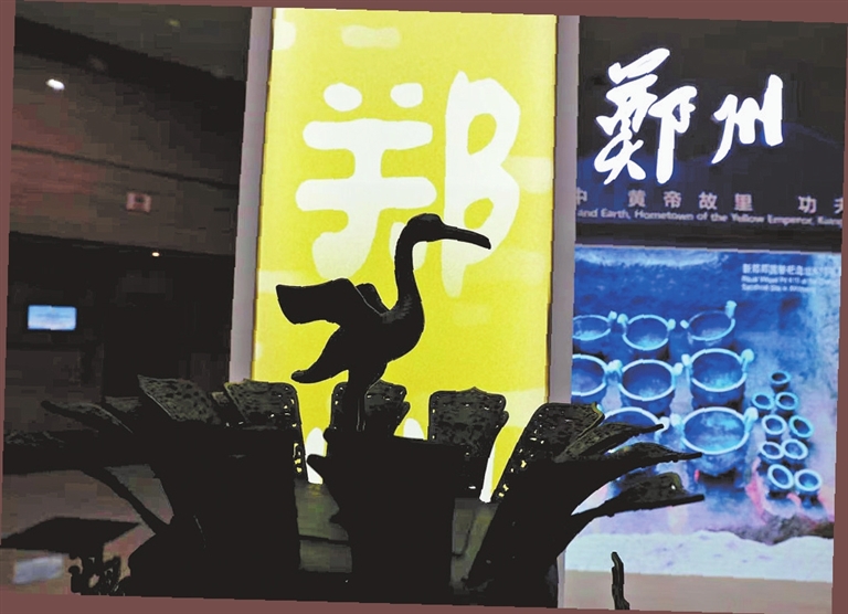 峯會現場,鄭州城市展區展出的蓮鶴方壺工藝品(7月23日攝)。 馮小敏 攝