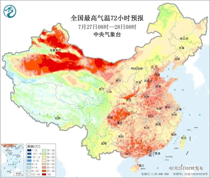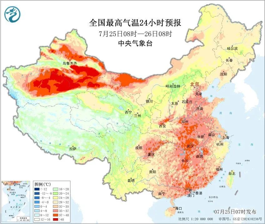 今天(7月25日),我國華北、東北等地的降雨仍將持續,部分地區或出現大暴雨。與此同時,中東部的高温天氣將進一步增多,未來幾天南北方都會十分悶熱,需持續注意防暑降温。