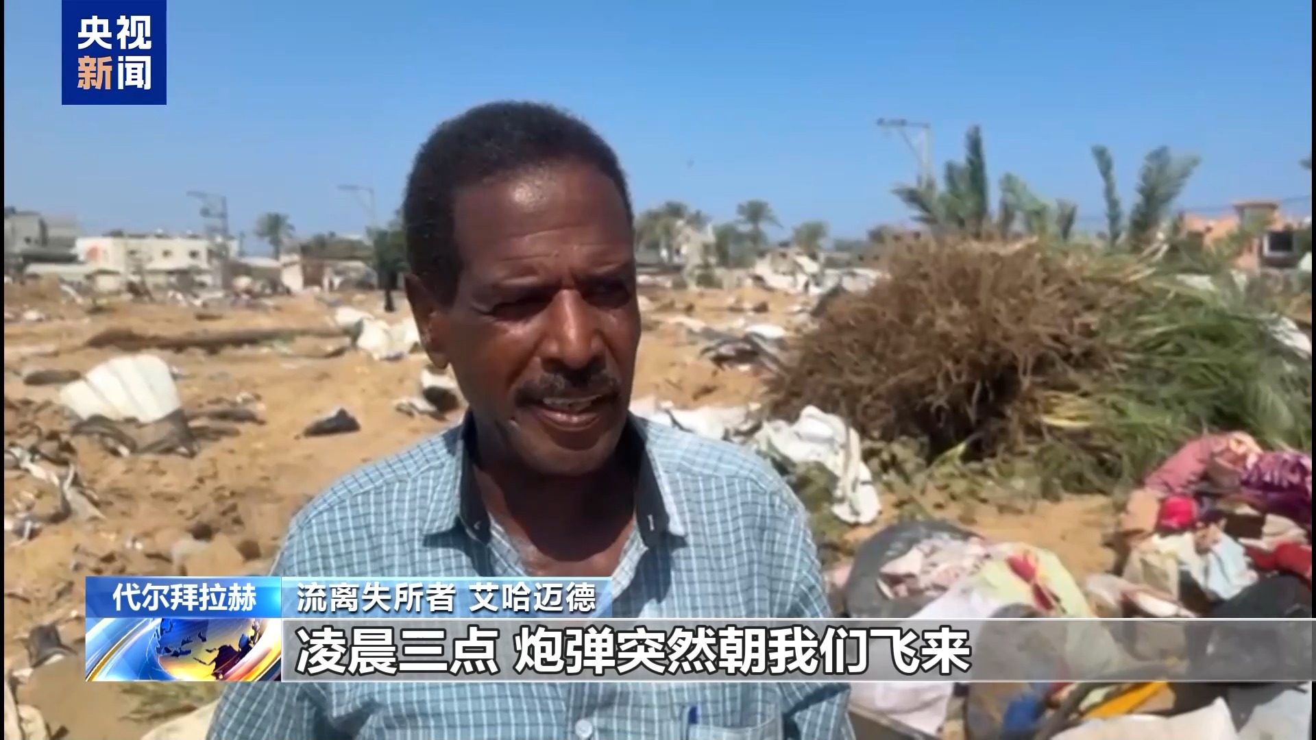 *流離失所者 艾哈邁德:*凌晨三點,炮彈突然朝我們飛來,我們連衣服都來不及換就跑了出去。回頭看,什麼都沒剩下。短短幾秒鐘,天翻地覆。