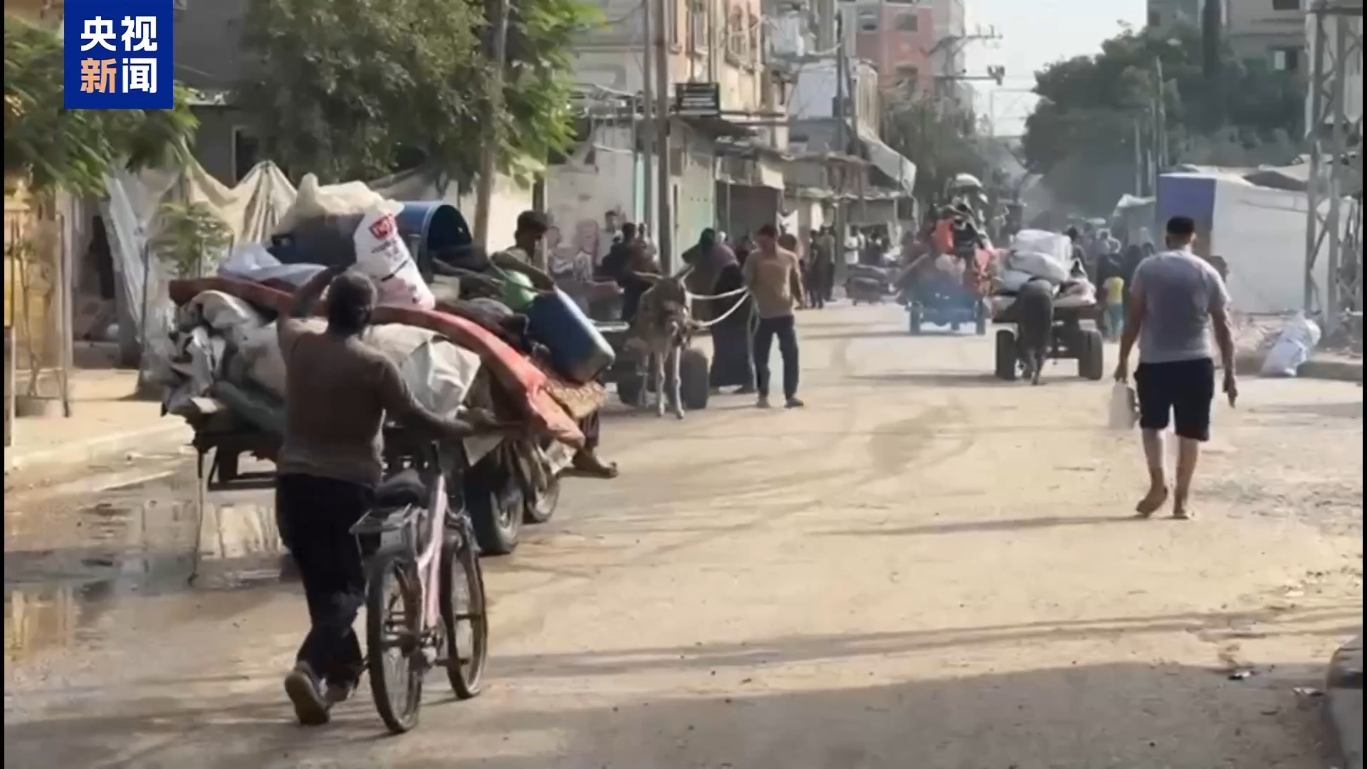 以軍20日向加沙中部代爾拜拉赫西南城區居民發佈撤離令,21日凌晨對代爾拜拉赫發動多輪空襲和炮擊,並於當天出動地面部隊攻入南部和東部城區。這是本輪衝突以來,以軍首次對代爾拜拉赫發動地面進攻。儘管目前以軍已從該區域撤出,但總枱報道員在現場看到,出於對戰事再起的擔憂,大批當地居民已收拾行囊,踏上逃亡之路。