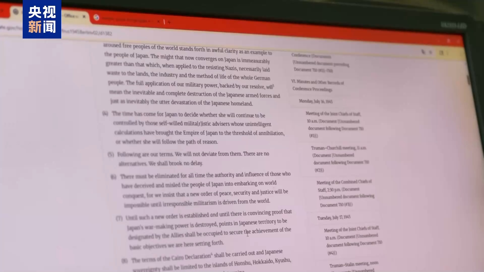 *總枱記者 康玉斌:*我們知道,《波茨坦公告》一共13條,文字簡短卻分量極重,它不僅是同盟國對法西斯侵略的嚴正控訴,也凝結了中國長期抗戰所贏得的國際尊重與話語權。