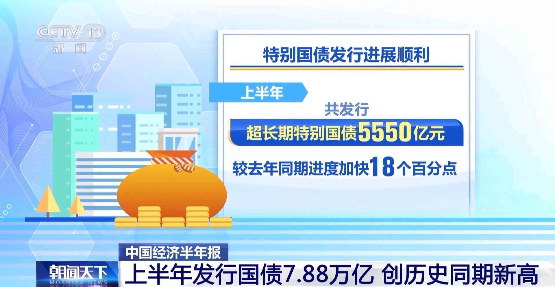 特別國債發行進展順利。上半年共發行超長期特別國債5550億元,較去年同期進度加快18個百分點。用於支持國有大型商業銀行補充核心一級資本的5000億元中央金融機構注資特別國債,於4月下旬至6月上旬分4次如期發行完畢。
