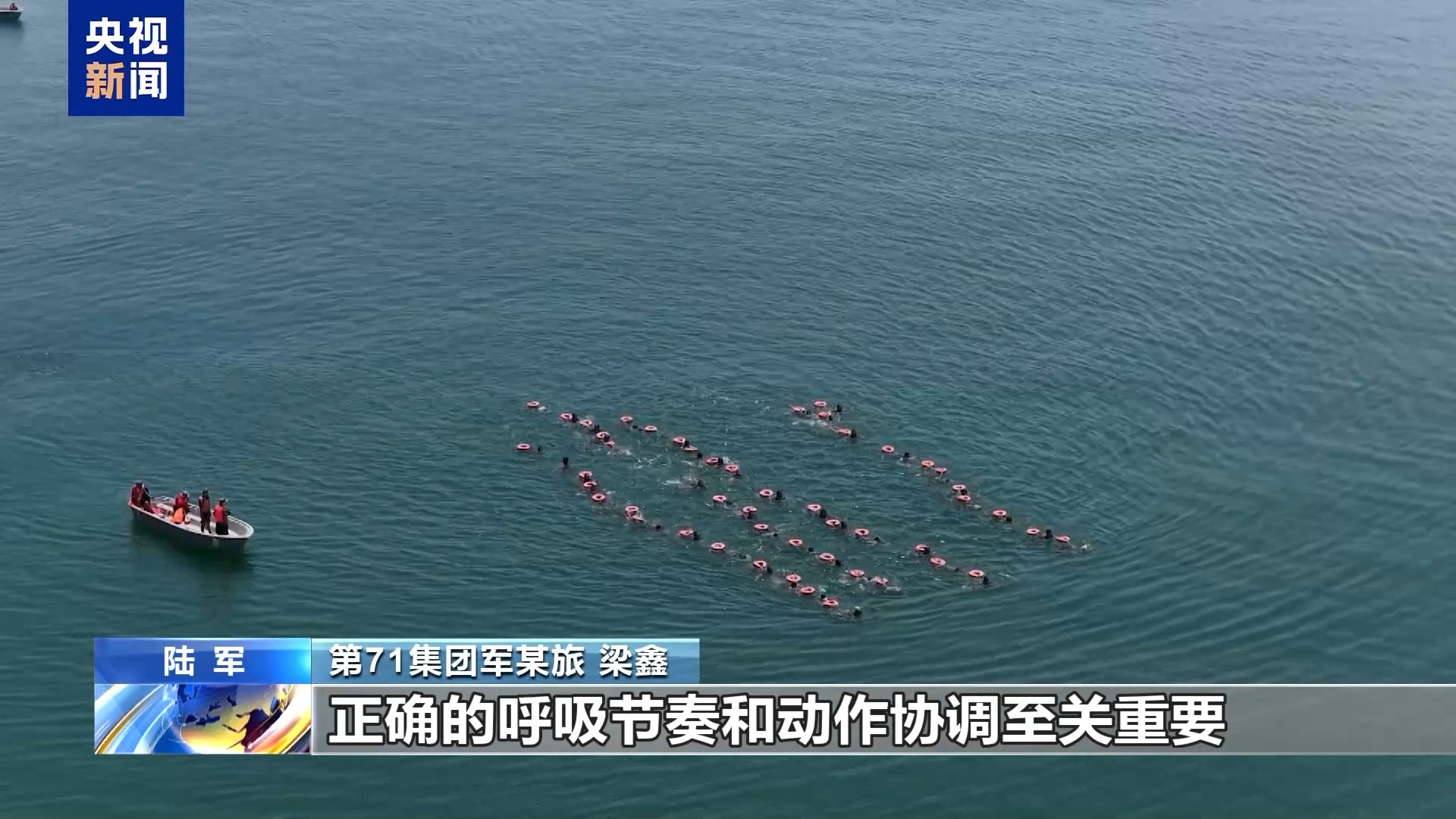 *第71集團軍某旅 梁鑫:*對於初學者來説,在赤臂蛙泳訓練中,正確的呼吸節奏和動作協調至關重要,划水、收腿、換氣、伸臂、蹬腿,每一個動作都做到位,可以最大限度節省體力,提高游泳速度和距離。