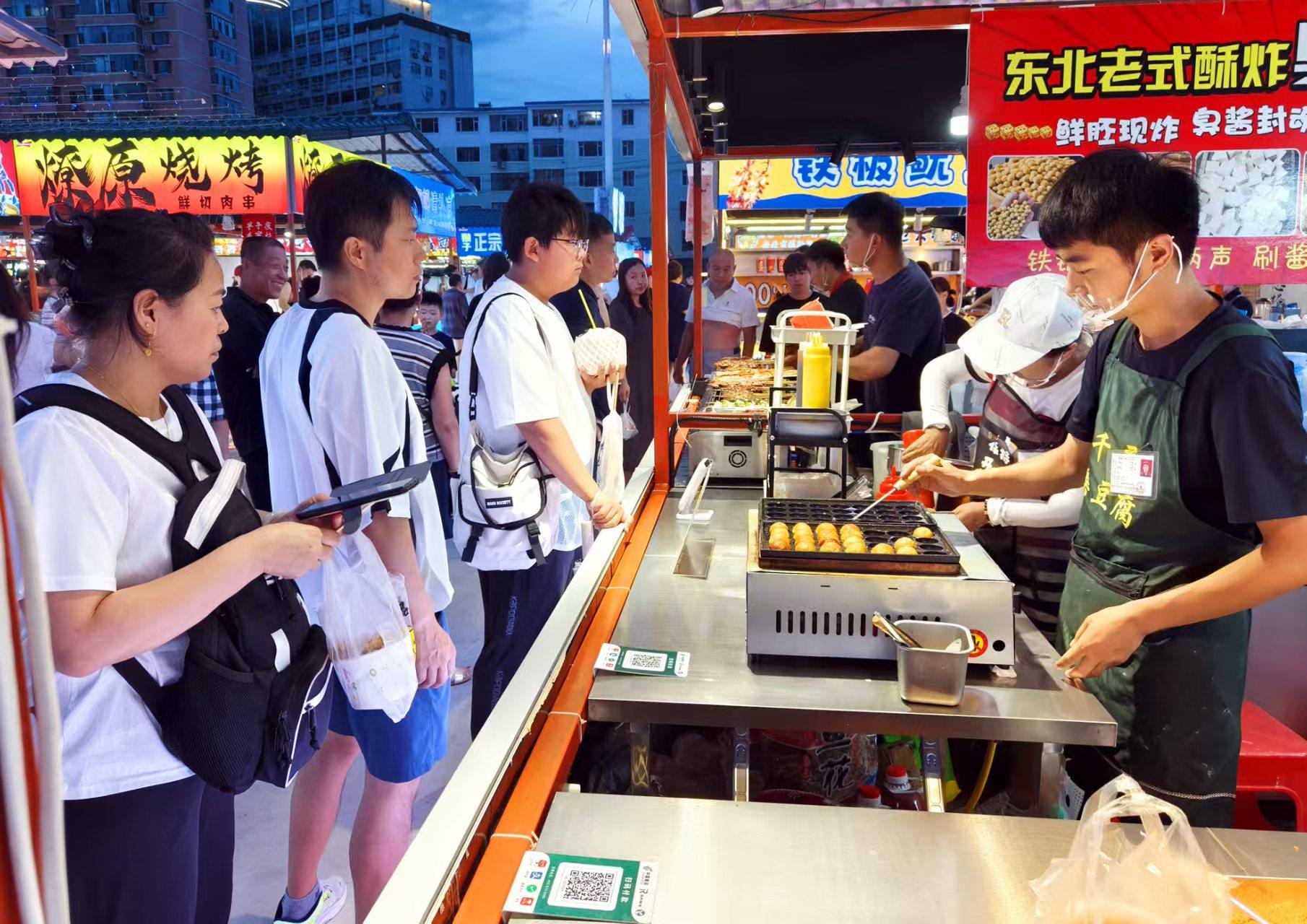 夜市“火”起來:延北夜市花樣翻新挑戰食客味蕾;新村夜市涵蓋餐飲、娛樂、購物等多業態;供銷市集打造開放式公共就餐區,讓遊客告別端碗站立的倉促,舒適度十足;民俗園美食街的五彩集裝箱、點點彩燈,搭配花車、LED屏、音樂與卡通陳設,將街區裝扮得潮流時尚,洋溢着青春氣息。