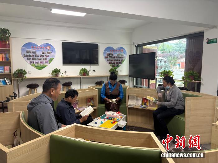 7月25日,拉薩市城關區魯固社區黨羣服務V站內,當地居民在閲讀區看書。 中新網記者 張東方 攝