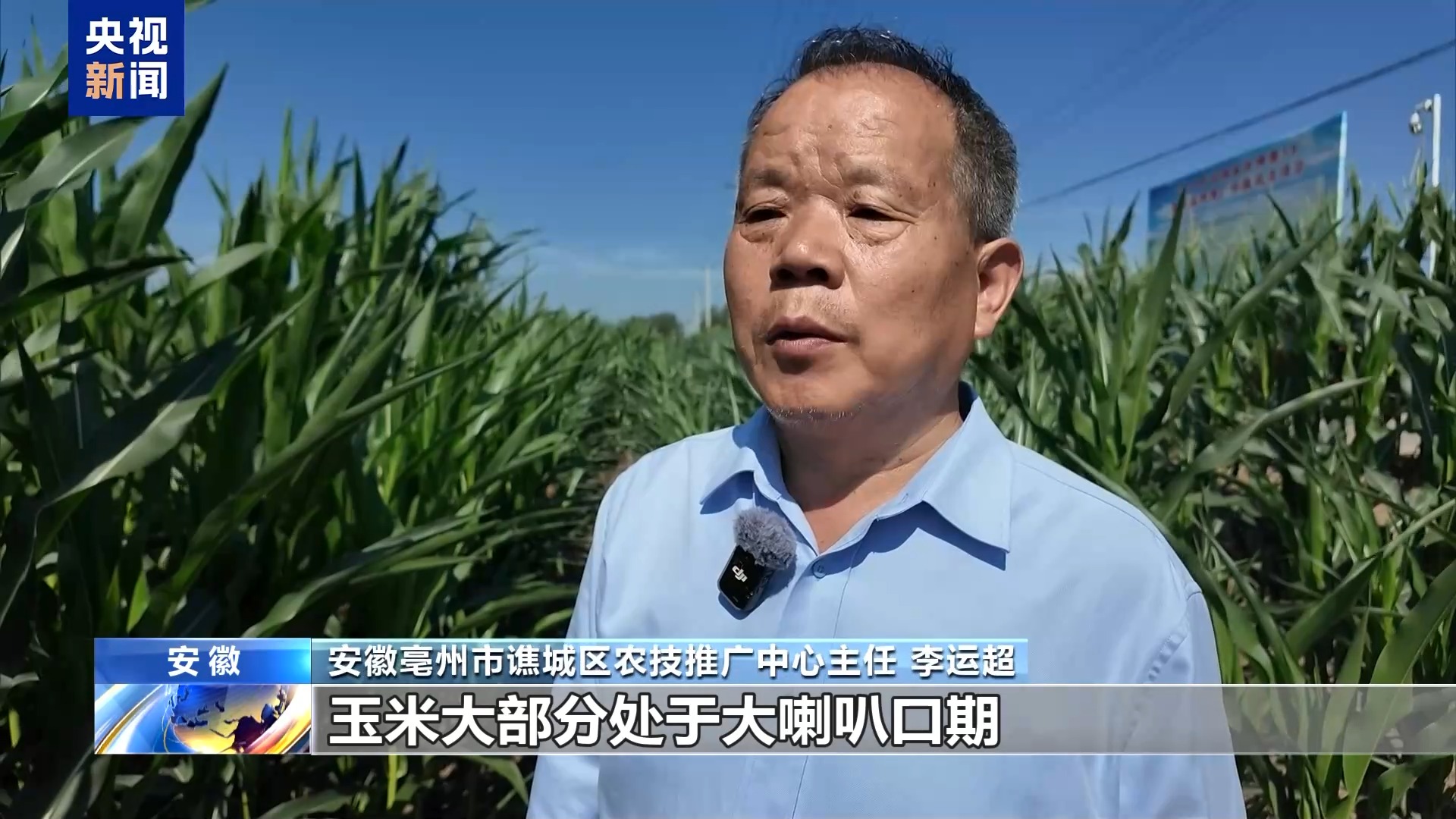 *安徽亳州市譙城區農技推廣中心主任 李運超:*我們譙城區的玉米大都處於大喇叭口期,缺水會影響雄穗的抽出,花粉壞死,降低結實率,影響產量。因此,當前要及時地澆水。