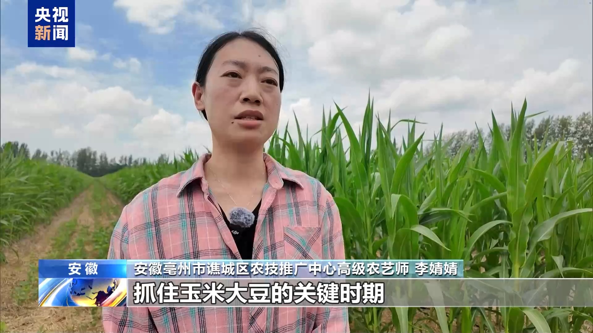 *安徽亳州市譙城區農技推廣中心高級農藝師 李婧婧:*抓住玉米大豆的關鍵時期,補水補肥,以奪取秋糧的豐收。