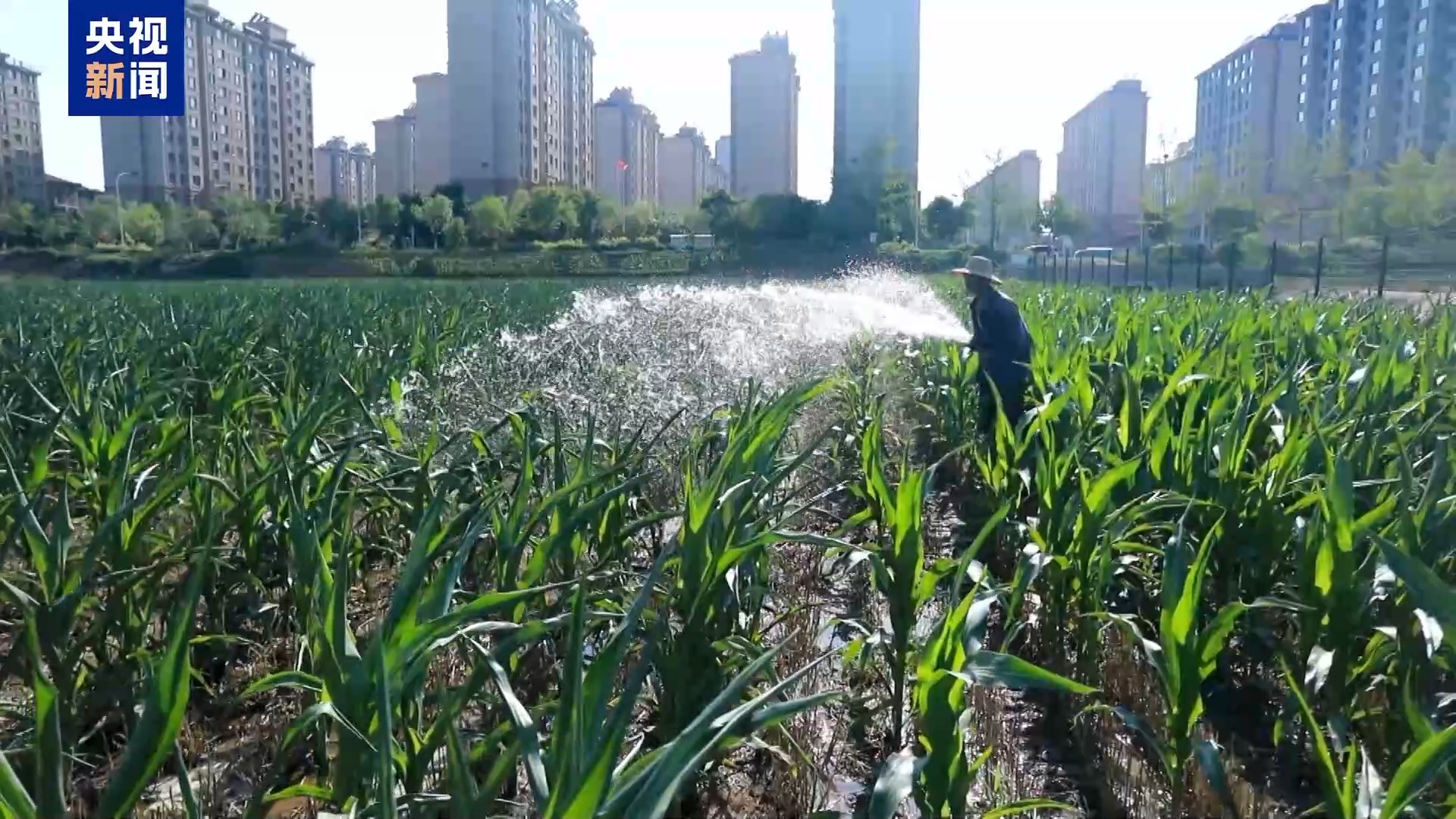 眼下,河南周口項城玉米正值生長關鍵期,近期的持續高温,再加上有效降水不足,部分地塊玉米葉片出現捲曲。在鄭郭鎮,當地正在進行第二輪全面補水。7台卷盤式自走噴灌機360度旋轉,實現精準覆蓋,200畝玉米田的滴灌帶也持續輸送水源。