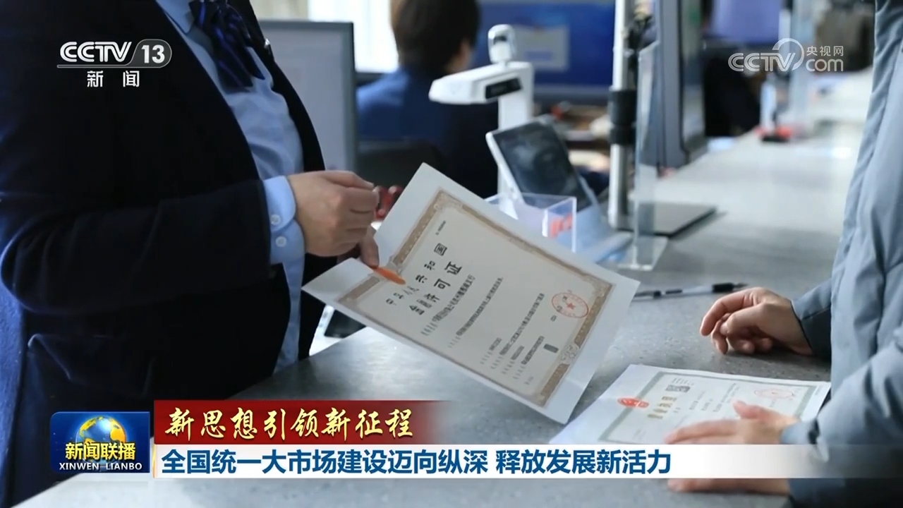 央視網消息 (新聞聯播):習近平總書記指出,構建新發展格局,迫切需要加快建設高效規範、公平競爭、充分開放的全國統一大市場,建立全國統一的市場制度規則,促進商品要素資源在更大範圍內暢通流動。當前,全國統一大市場建設向縱深推進,制約經濟循環的關鍵堵點加速打通,市場體系基礎制度更加健全,為經濟高質量發展注入強勁動能。