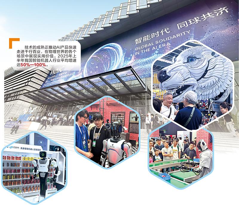 技術的成熟正推動AI產品快速走進千行百業,在物理世界的各個場景中展現實用價值。2025世界人工智能大會現場,一系列“能幹活、會互動、懂協作”的AI產品,吸引着觀眾的目光。