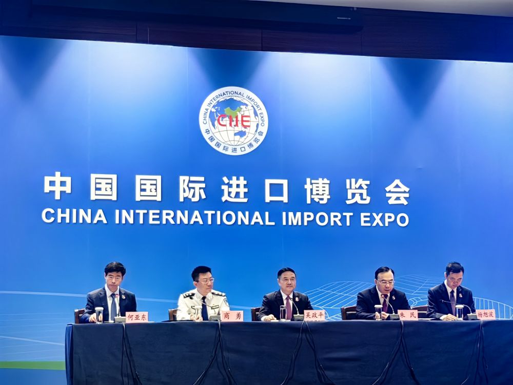 7月25日舉行的第八屆中國國際進口博覽會新聞通氣會現場。新華社記者 周蕊 攝
