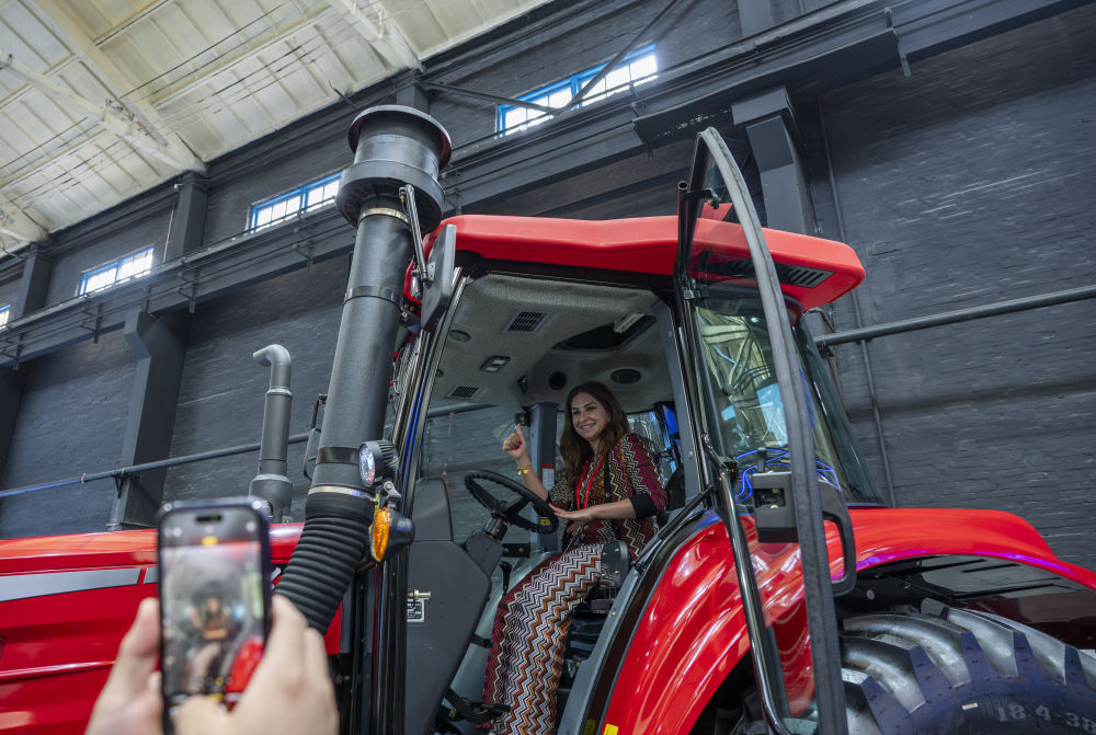 專為大型農場重負荷作業設計、提供更清潔的排放、適配旱田作業需求……步入公司的產品展區,各式拖拉機令代表們目不暇接。當講解員邀請大家上車體驗時,不同功能型號的拖拉機前迅速排起長隊。