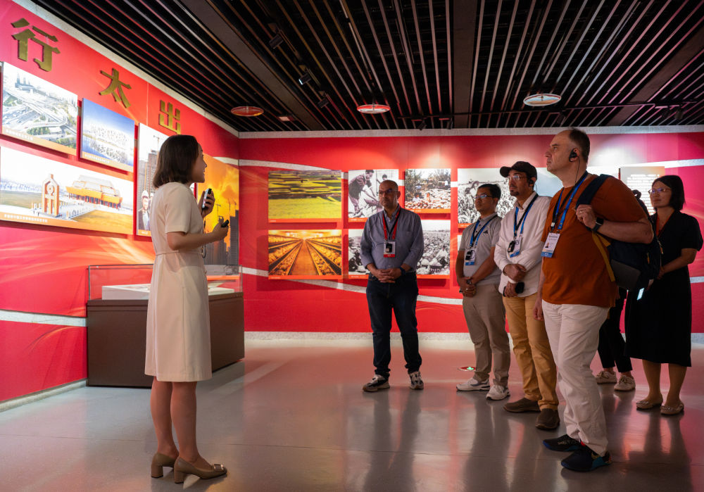 7月26日,上海合作組織媒體智庫峯會與會嘉賓在河南安陽林州市紅旗渠紀念館參觀。新華社記者 胡競文 攝