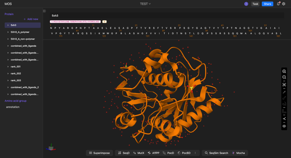 MoleculeOS作為分子之心自主研發的產業級AI蛋白質基礎設施平台,集成了全球首個多模態AI蛋白質基礎大模型NewOrigin(達爾文)等十餘項性能領先的AI蛋白質預測、優化、設計技術,還融合了分子動力學、量子化學等科學計算方法,實現了從靜態觀察到動態設計的全面覆蓋。