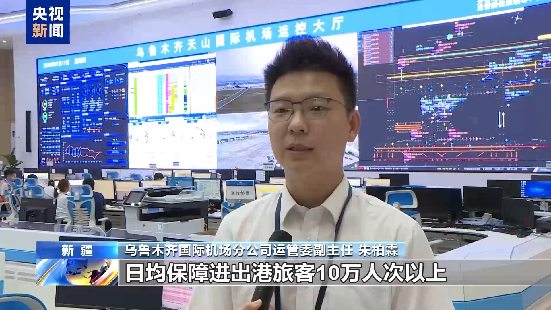 *烏魯木齊國際機場分公司運管委副主任 朱柏霖:*暑運以來,烏魯木齊天山國際機場日均保障進出港旅客10萬人次以上,日均保障航班起降600架次以上,其中,運行寬體機數量佔全天總架次的27%,遠超去年同期水平。