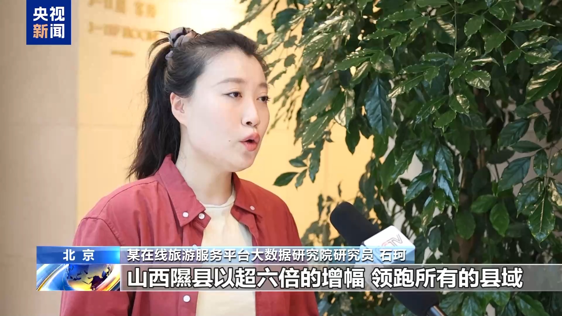 *某在線旅遊服務平台大數據研究院研究員 石珂:*在預訂增幅上,山西隰縣以超六倍的增幅,領跑所有的縣域,而福建將樂縣和山西陵川縣的增速也緊隨其後,均達到三倍以上。