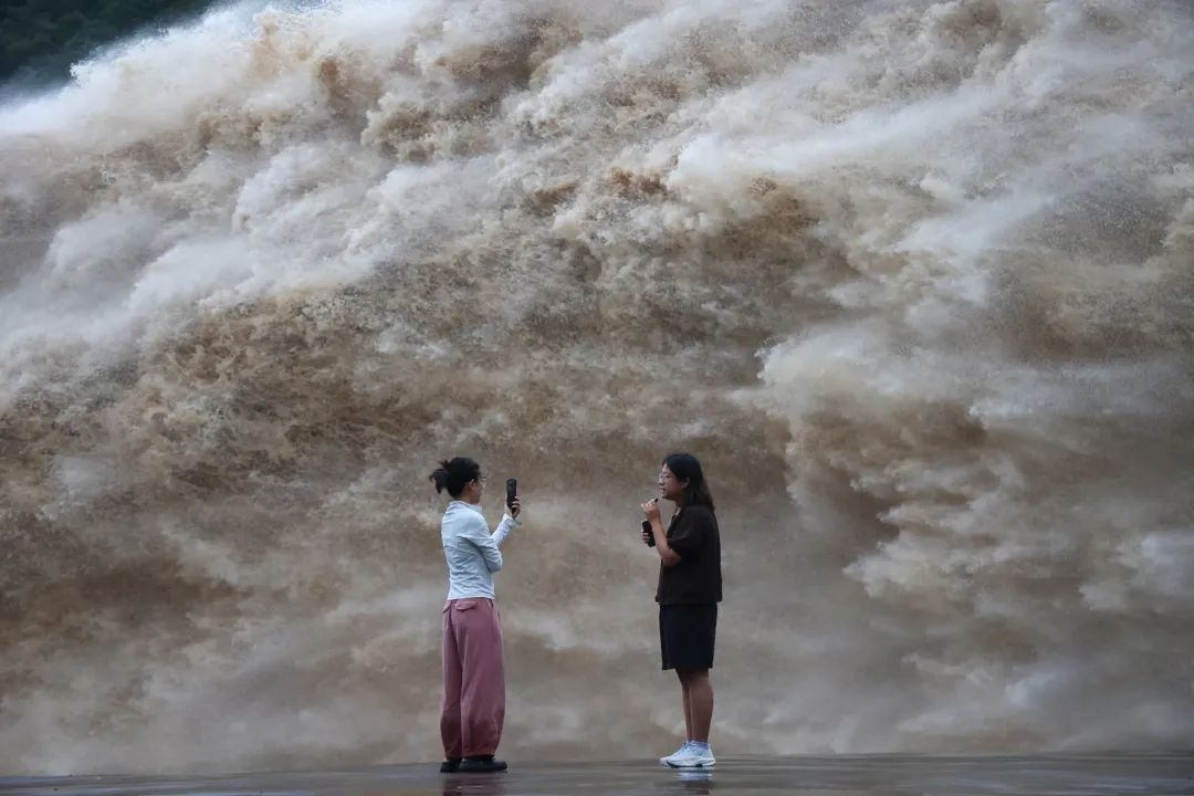 北京日報客户端記者直擊平谷黃松峪水庫泄洪。