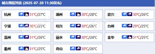 今天夜裏到明天,浙北、浙中東部和沿海地區陰有中到大雨,部分地區暴雨,局部大暴雨;其它地區多雲到陰有時有陣雨或雷雨,局部大到暴雨。