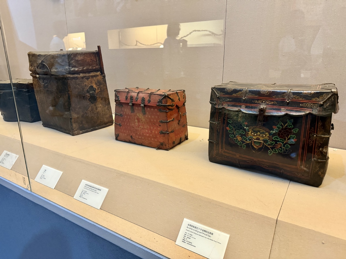 西藏犛牛博物館中幾件犛牛皮製作而成的箱子。