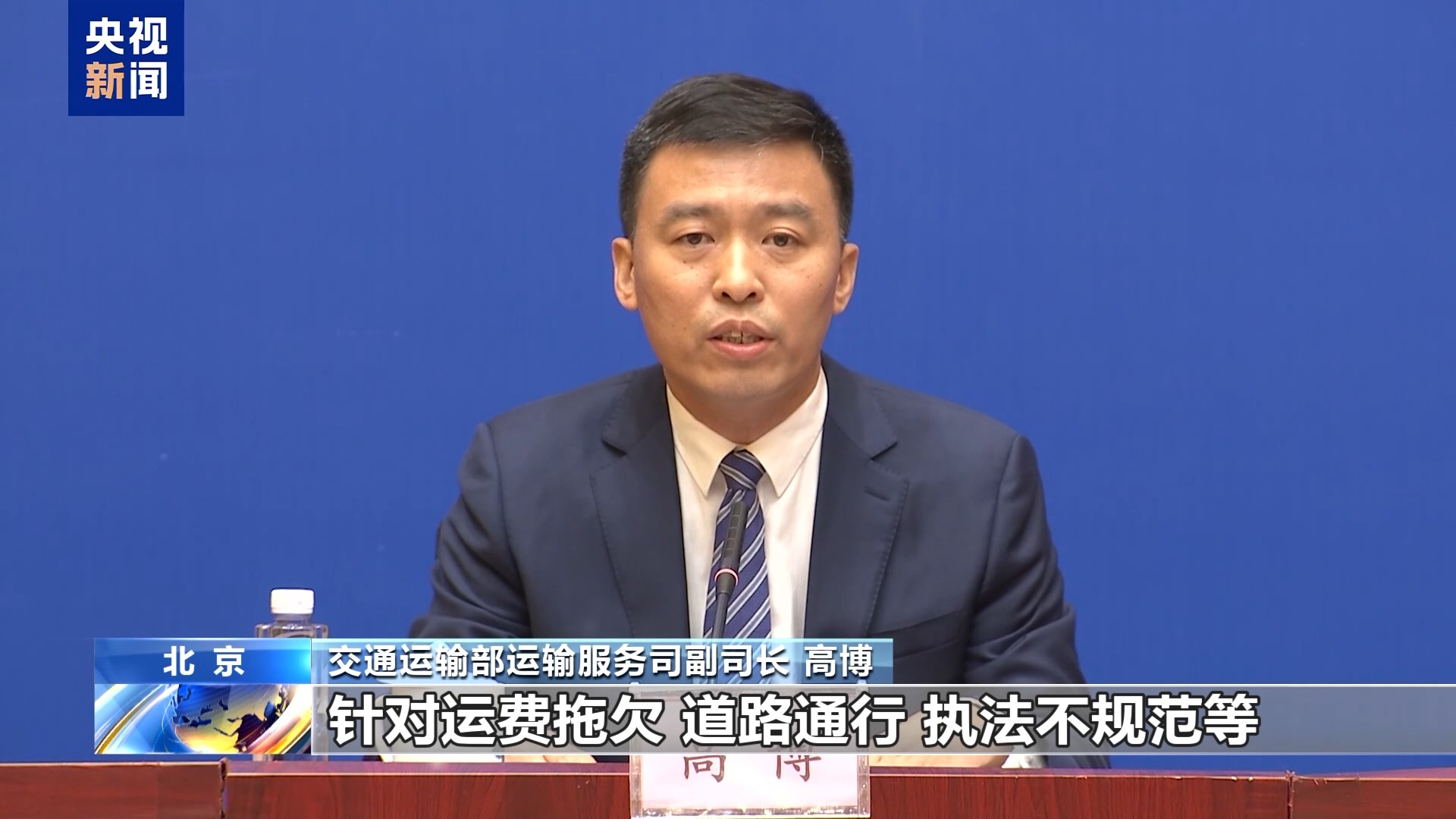 *交通運輸部運輸服務司副司長 高博:*針對運費拖欠、執法糾紛、道路通行等貨車司機投訴舉報高頻事項,逐項制定接訴即辦工作指南,明確各環節、各部門的辦理程序與辦理要求。所有的貨車司機投訴舉報工單,省級交通運輸部門均實施提級管理,推動熱點問題有效解決。