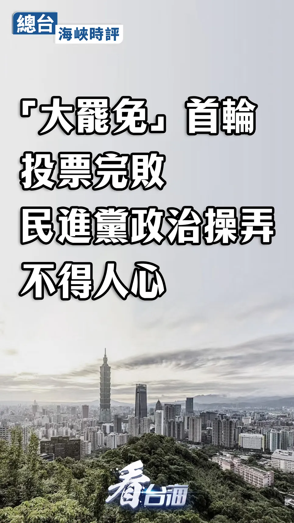 總枱海峽時評:“大罷免”首輪投票完敗,民進黨政治操弄不得人心