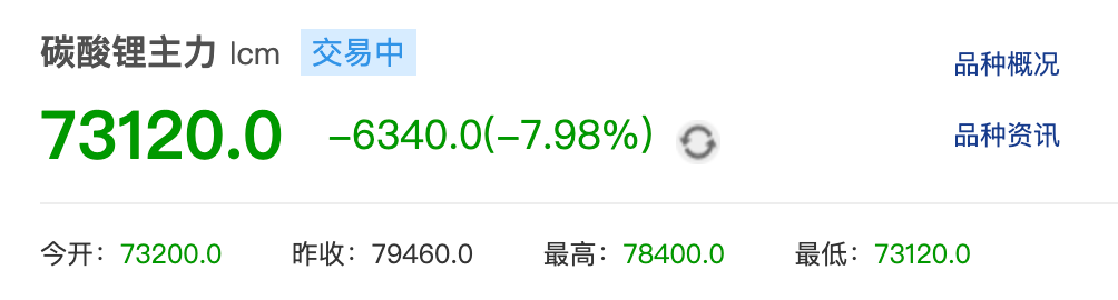 【環球網財經綜合報道】7月28日,碳酸鋰期貨主力合約遭遇大幅下跌行情,盤中價格一度觸及跌停,最終以73120元/噸的價格收盤,跌幅高達7.98%。