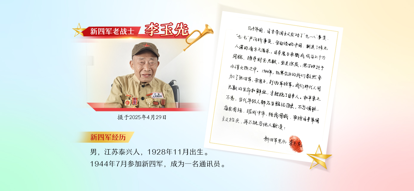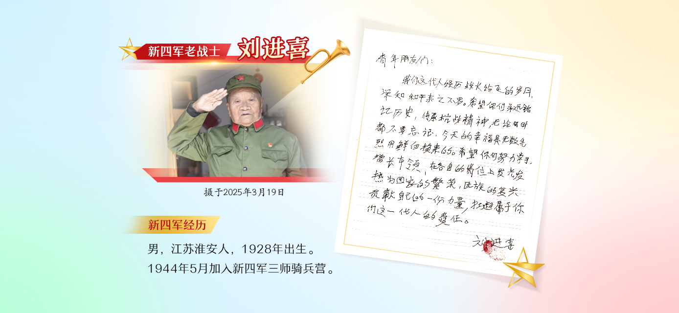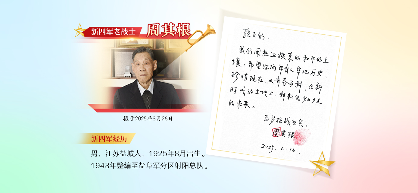 2025年盛夏,揚州瘦西湖畔。唱起東進抗敵的《新四軍軍歌》,一位精神矍鑠的百歲老戰士,歌聲嘹亮。