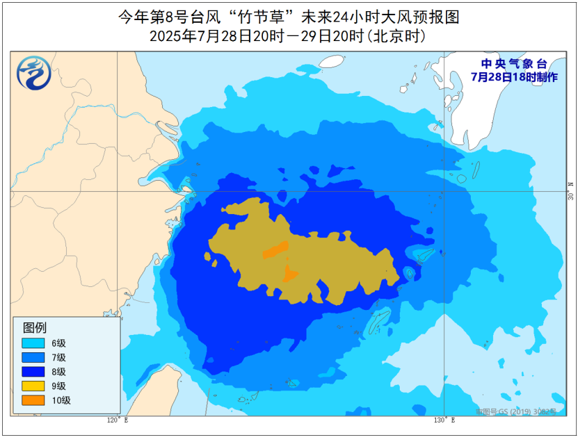 中央氣象台7月28日18時繼續發佈颱風藍色預警