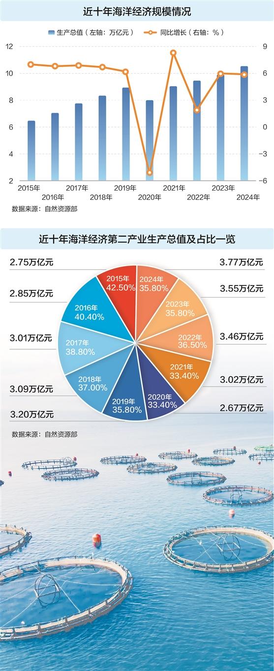 海洋經濟的崛起,離不開科技創新的強力支撐。從深海探測到海水養殖,從海洋能源開發到海洋裝備製造,科技創新正以前所未有的深度和廣度,重塑海洋經濟新格局。自然資源部海洋戰略規劃與經濟司的數據顯示,2024年海洋新興產業增加值同比增長7.2%,增速高於海洋生產總值1.3個百分點,海洋經濟增長的新動能培育效果不斷顯現。