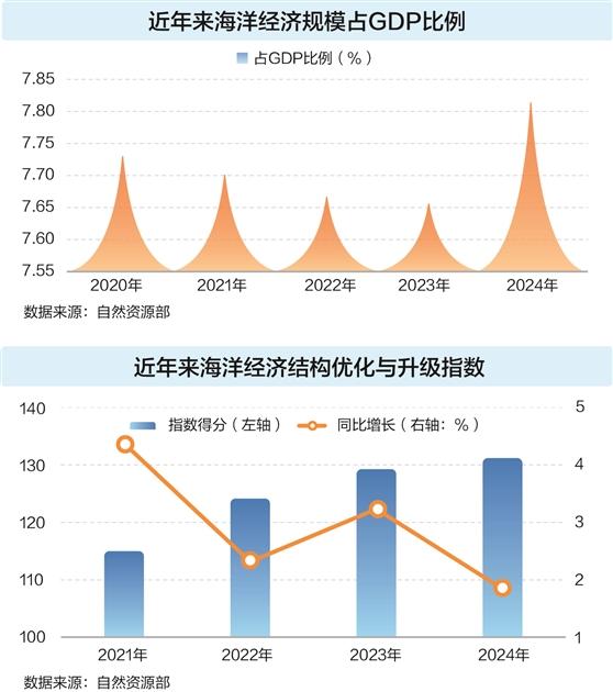 《2025中國海洋經濟發展指數》也顯示,2024年我國海洋經濟結構優化與升級指數為131.0,創2021年以來新高,比上年增長了1.8%,表明海洋產業結構進一步優化,科技創新能力持續提升。