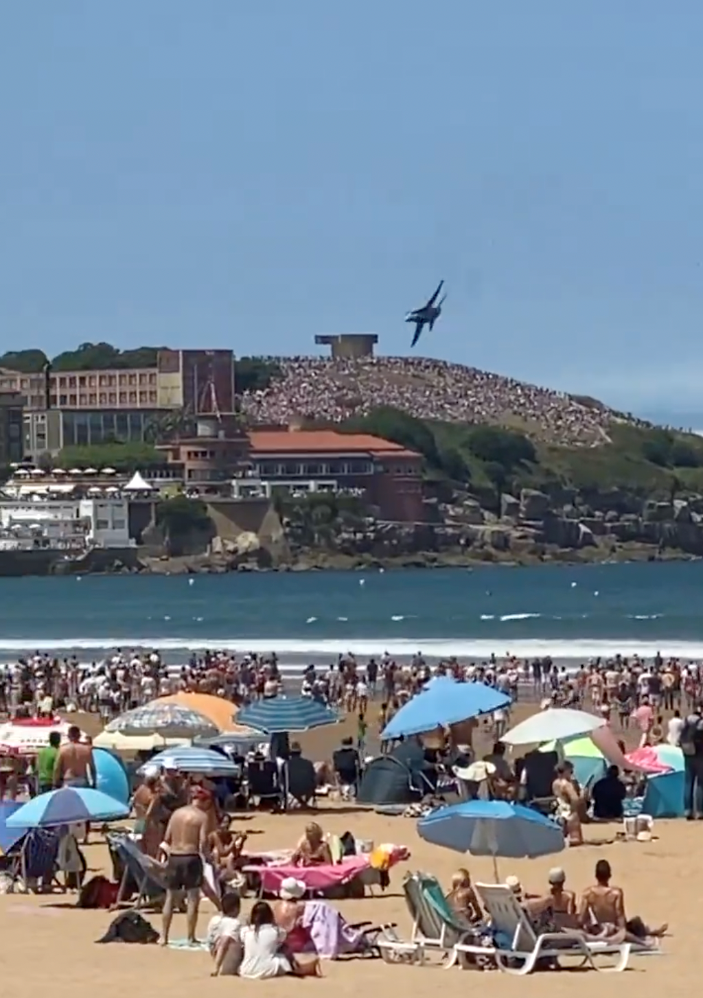 驚險!西班牙戰機飛行表演中突然飛向人羣並劇烈翻轉,險些墜海,西空軍回應:為了“躲鳥”
