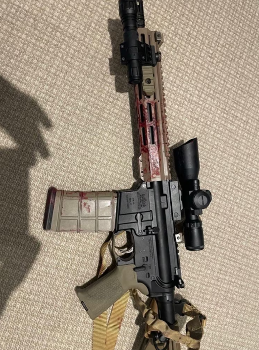 報道稱,槍手作案時身穿防彈衣,使用步槍。據消息人士透露,監控攝像頭捕捉到槍手出現在大樓外的情景。警方已證實畫面的真實性。在監控畫面中,槍手穿着襯衫和外套,戴着墨鏡,一隻手提着步槍向作案現場走去。此外,美國廣播公司還曝光了槍手所用步槍的圖片,圖片中的步槍血跡斑斑。